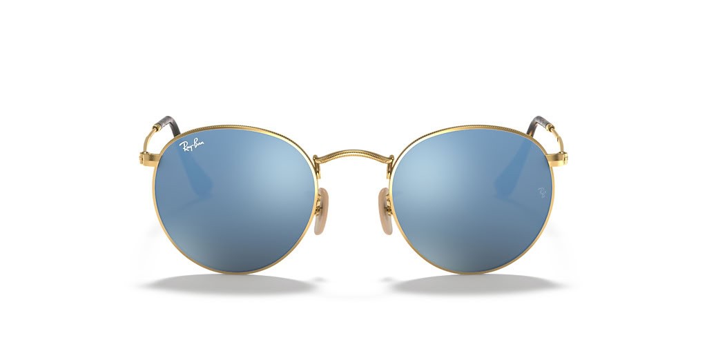 Ray-Ban RB3447N مسطحة مستديرة العدسات S (50 - 21) مع العدسات الزرقاء والذهب نظارات الإطار