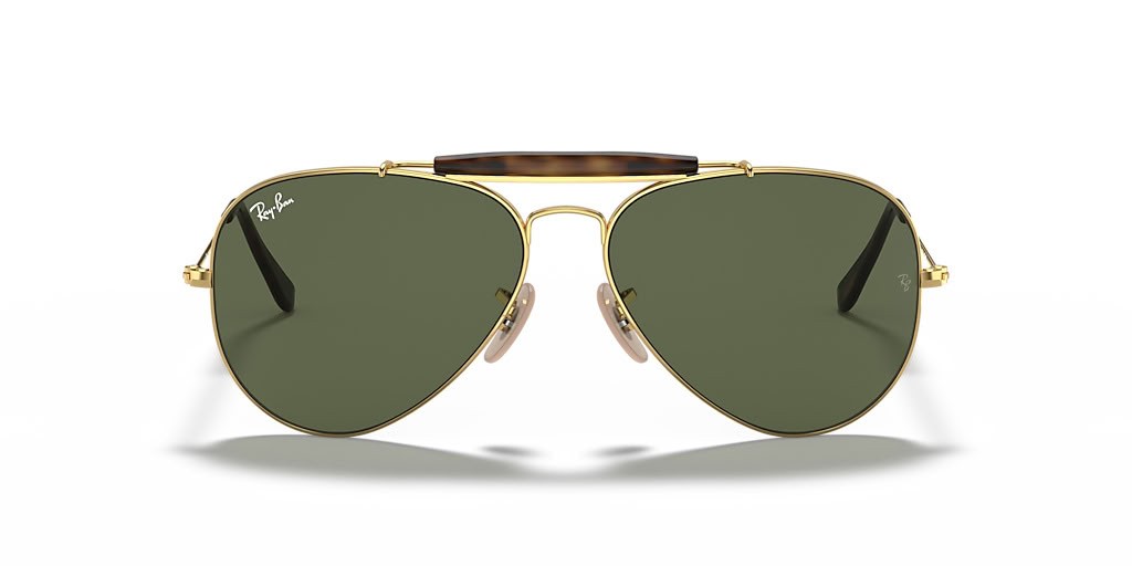 Ray-Ban RB3029 Outdoorsman Havana Collection XXL (62 - 14) mit Grünen Gläsern und Gold Rahmen Sonnenbrille