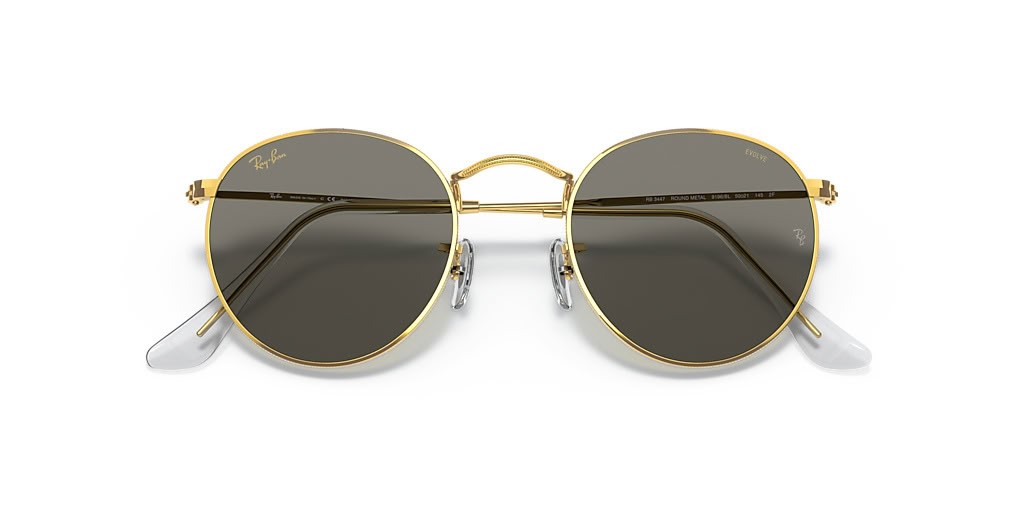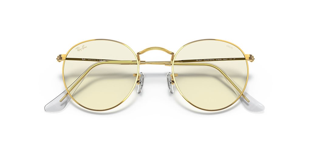 Ray-Ban RB3447 Round-Blue-Light Clear Weiterentwickeln S (50 - 21) mit Transparenten Linsen und Gold Rahmen Sonnenbrille