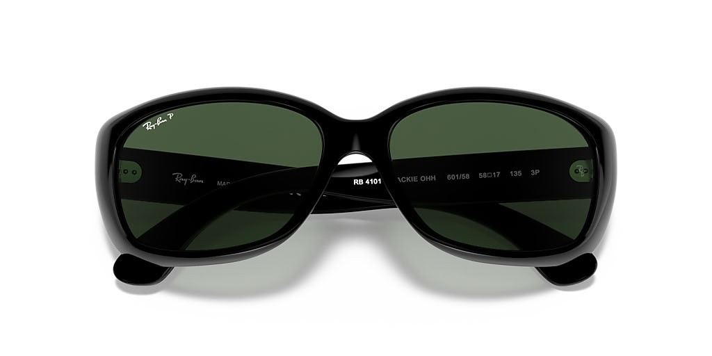 Ray-Ban RB4101 Jackie Ohh M (58 - 17) mit Grünen Gläsern und Schwarzem Rahmen, Sonnenbrillen