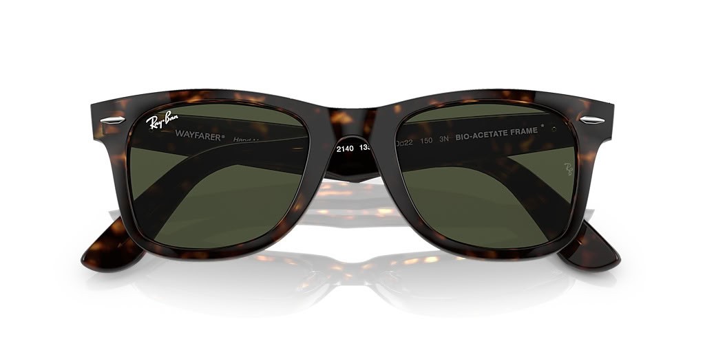 Okulary przeciwsłoneczne Ray-Ban RB2140 Original Wayfarer na bazie biologicznej L (50-22) z zielonymi soczewkami i черепаховой oprawce