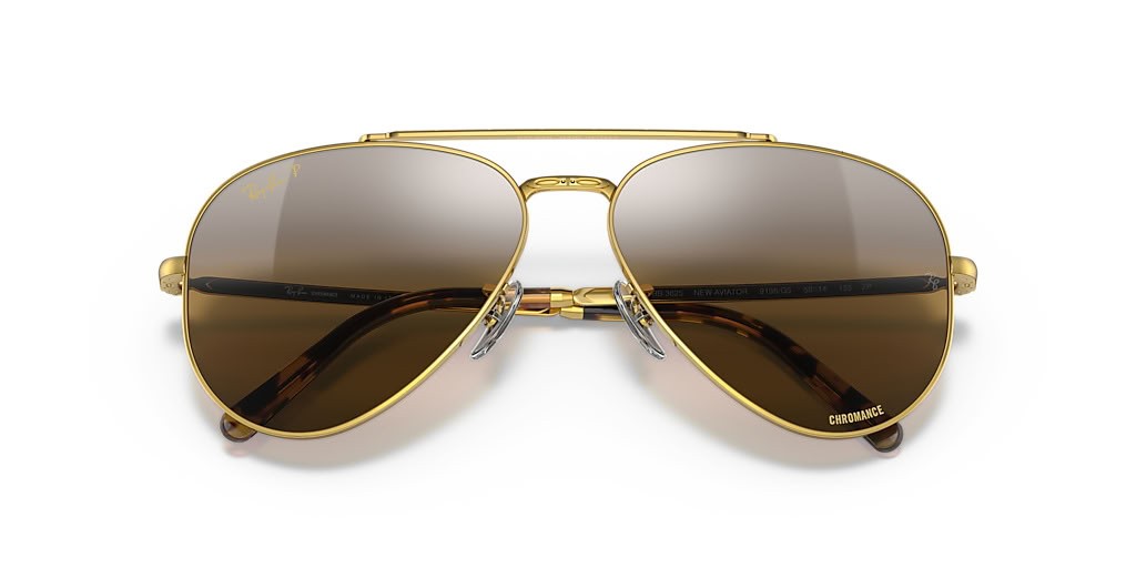 Okulary przeciwsłoneczne Ray-Ban RB3625 New Aviator L (58-14) z brązowymi soczewkami i złotej oprawce