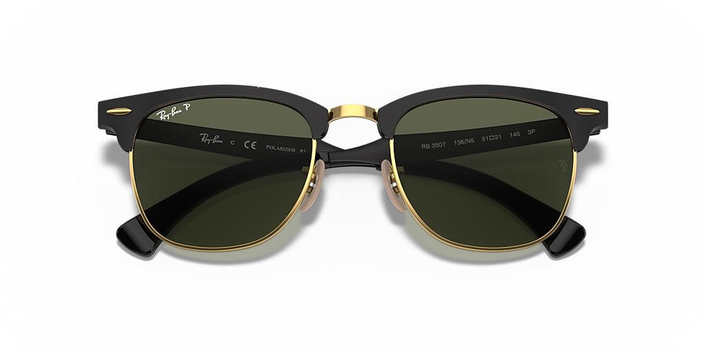 Ray-Ban RB3507 Clubmaster de Alumínio L (51 - 21), de cor Verde, lentes e Preto armação Óculos de sol