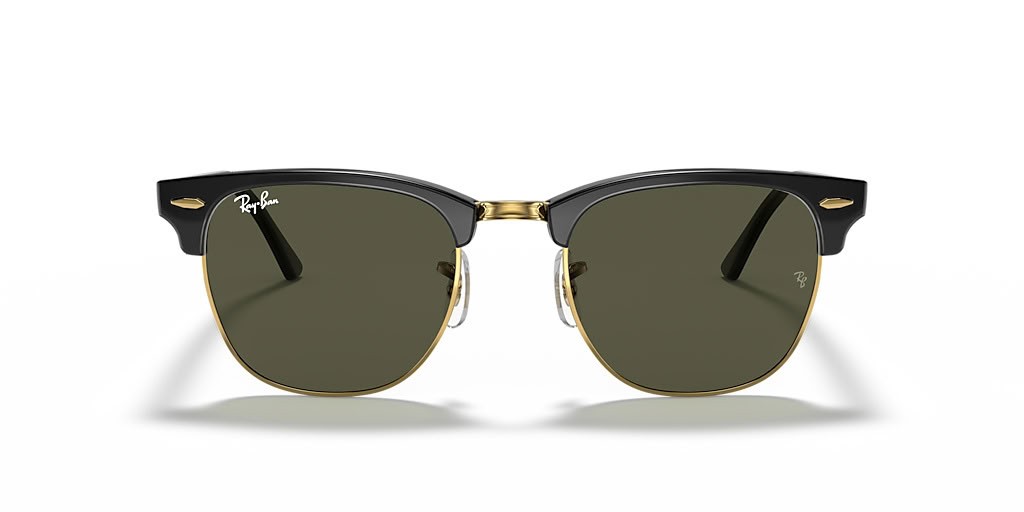 Ray-Ban RB3016F Clubmaster Klasické XL (55 - 19) s Zelené šošovky a Čierny rám slnečné Okuliare