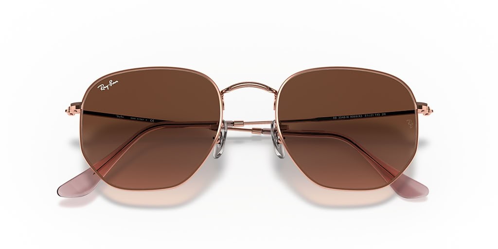 Ray-Ban RB3548N Šesťhranné, Ploché Šošovky, M (51 - 21) s Hnedé šošovky a Medi rámom slnečné Okuliare