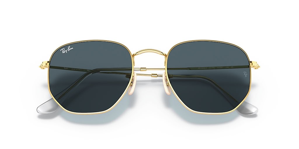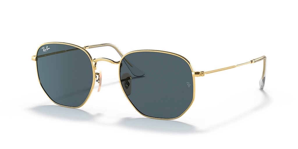 Ray-Ban RB3548N Sexkantiga Platt Linser Mkr (51 - 21) med Blå linser och Guld ram Solglasögon