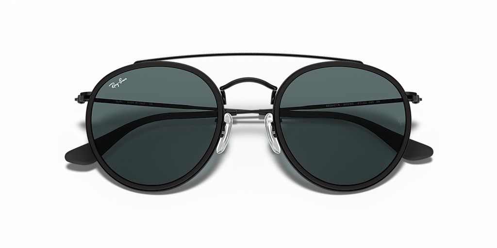 Ray-Ban RB3647N Yuvarlak Çift Köprü M (51-22) Mavi lensler ve Siyah çerçeve Güneş Gözlüğü